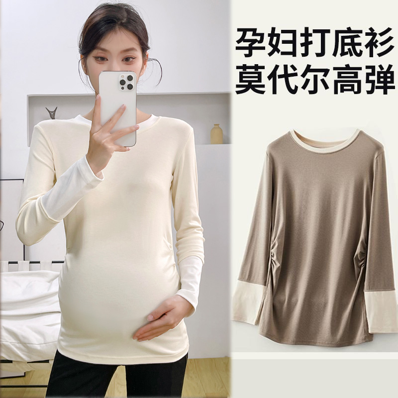 孕妇装打底衫秋冬圆领加厚德绒保暖春季内搭中长款半高领t恤上衣