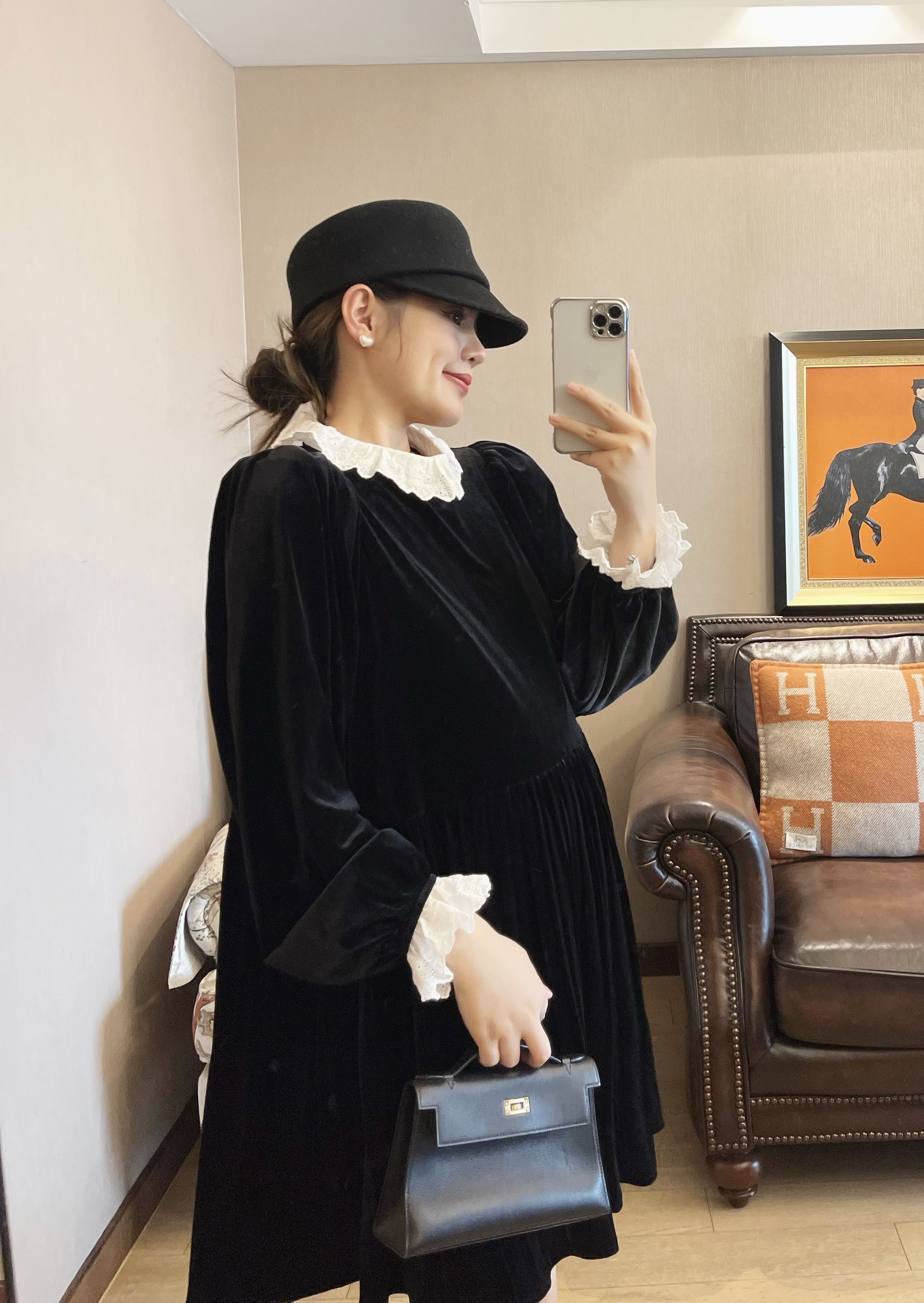 PEIPEI佩佩孕妇装赫本风2022新年新款春款丝绒冬春季孕后期连衣裙