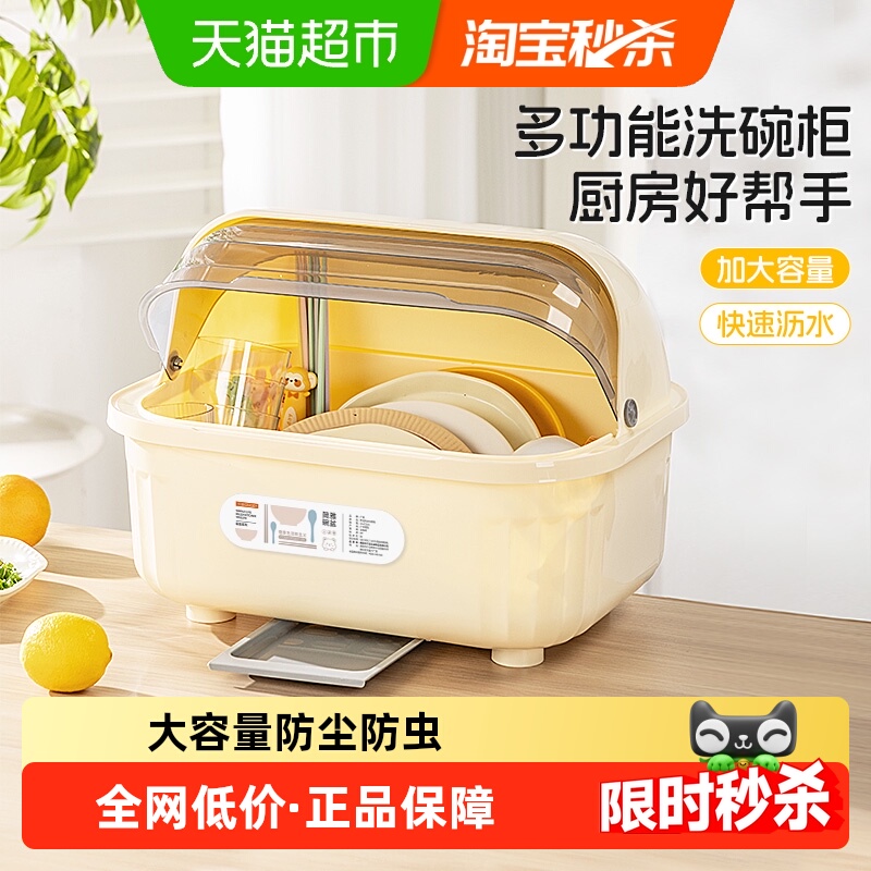 厨房碗架碗筷收纳盒多功能带盖家用放碟盘沥水防尘置物架塑料碗柜