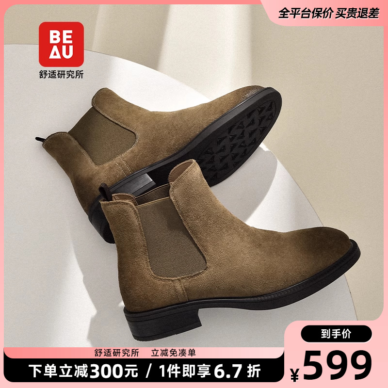 BEAU复古切尔西马丁靴女平底烟筒靴英伦绒面短靴女2025新款秋