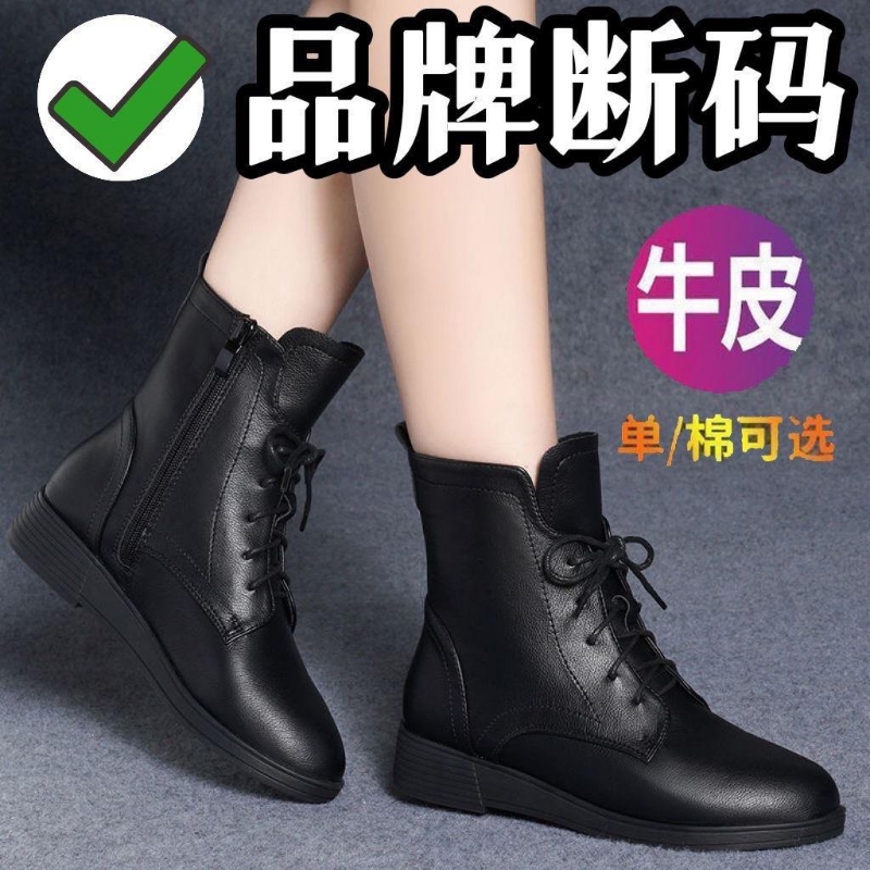 真牛皮短靴子软底真皮马丁靴女平底女靴新款短筒棉靴冬季加绒皮靴