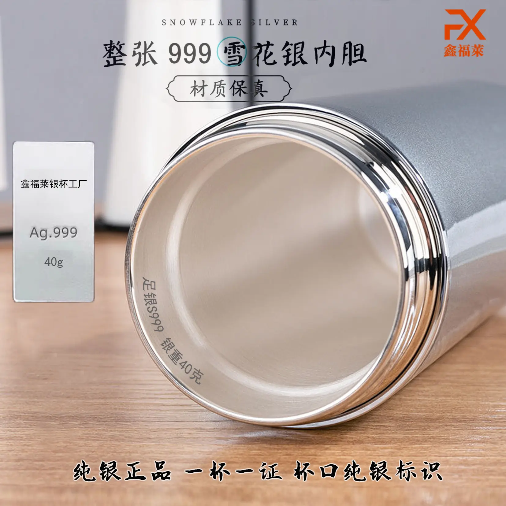 银杯子999纯银内胆保健茶杯雪花银水杯食用银高档礼品保温杯男士s