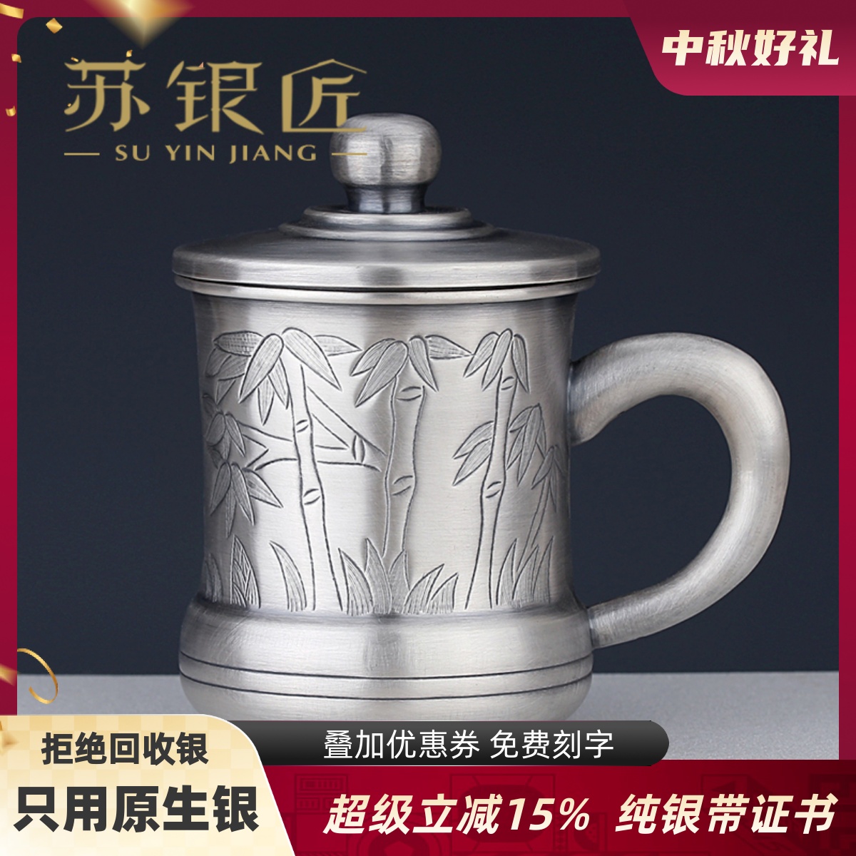 纯手工银茶杯银杯999纯银主人杯保健杯大容量茶缸子带盖纯银水杯