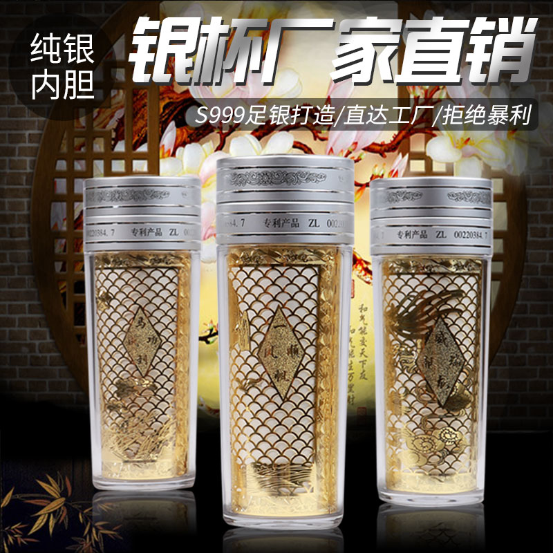 银水杯纯银内胆999银杯子足银茶杯商务保温保健杯创意定制礼品杯