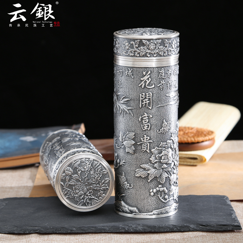 男士纯银水杯 999手工复古纯银正品雪花银内胆银杯子保温杯保健杯