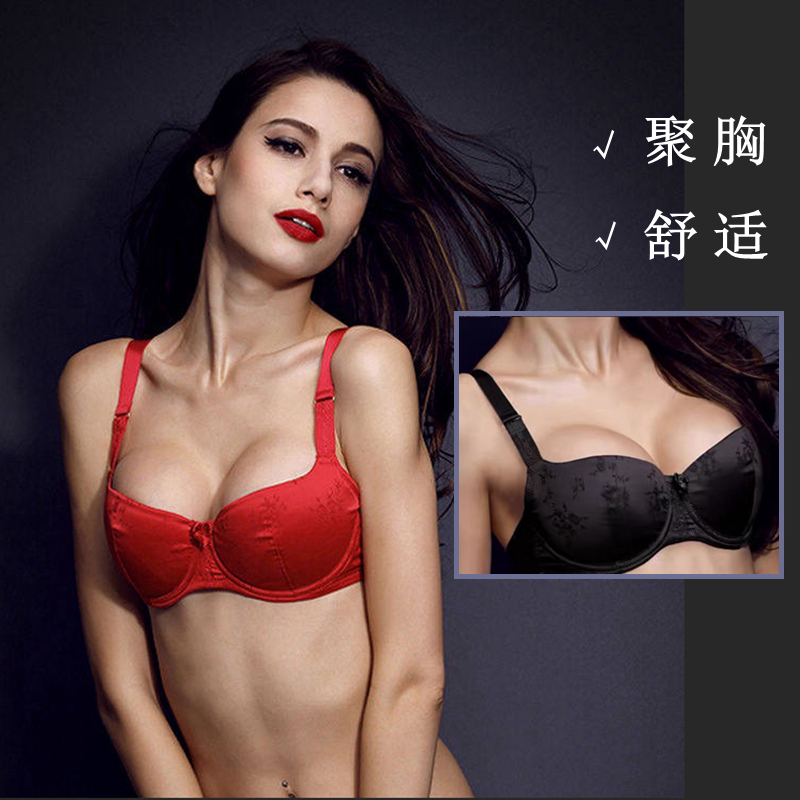 聚胸3D杯bra 聚拢撞色内衣女小胸显大收副乳防R下垂调整型文胸套