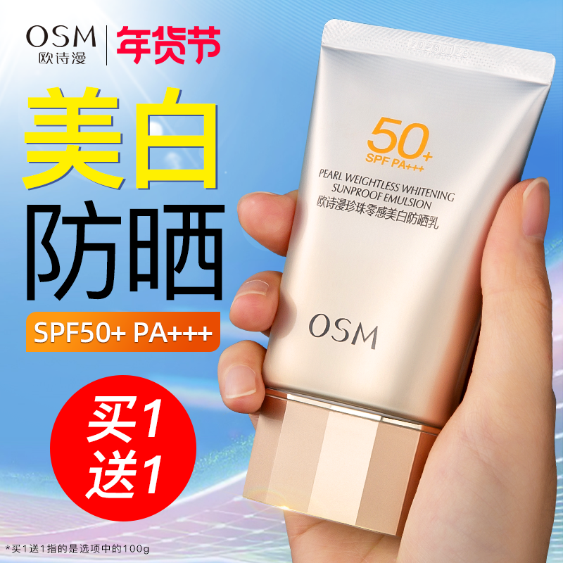 欧诗漫美白防晒霜50倍防紫外线正品官方旗舰店正牌隔离遮瑕三合一