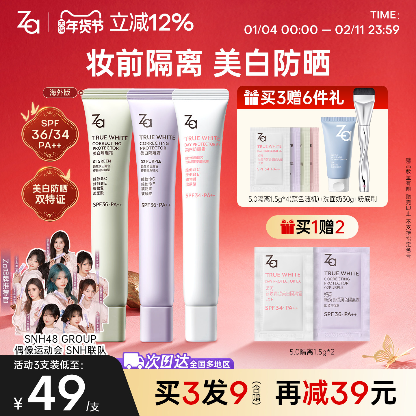 SNH48推荐Za姬芮美白防晒隔离霜妆前乳素颜霜三合一自然提亮遮瑕