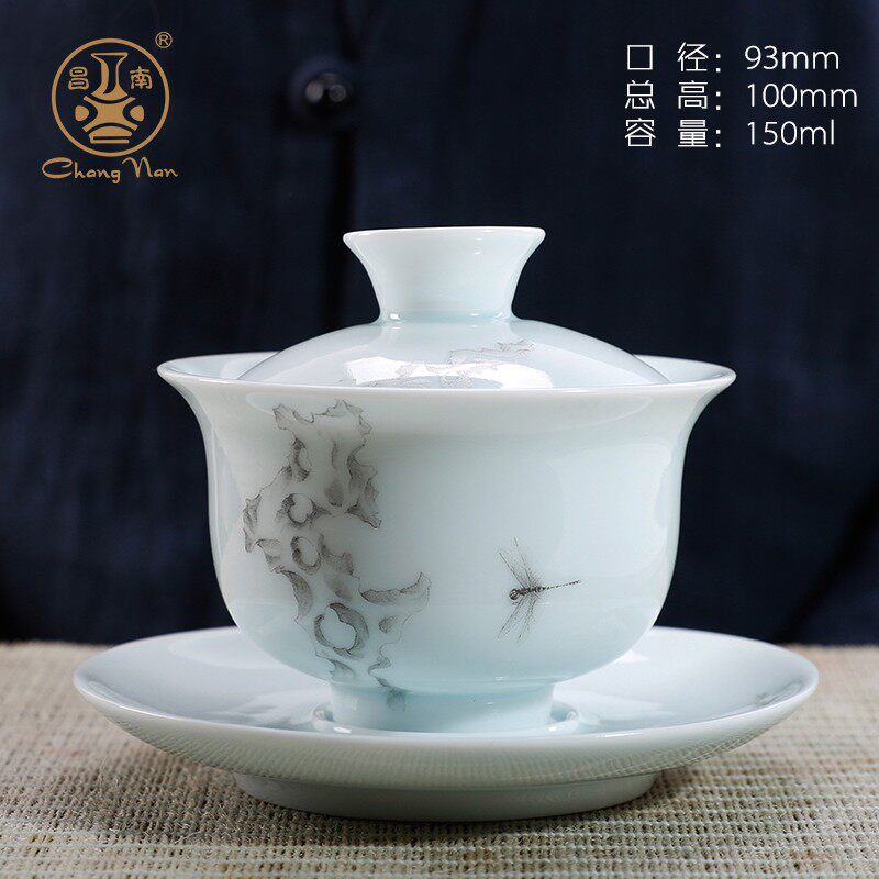 昌南陶瓷盖碗景德镇功夫茶具三才碗玉瓷敬茶碗大号粉彩泡茶壶茶杯