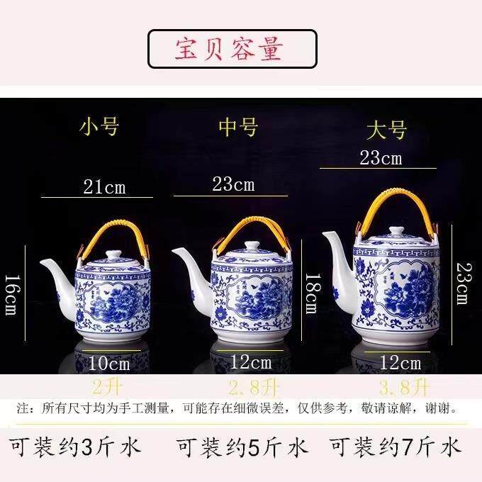 景德镇茶壶大号水壶青花瓷冷水壶家用陶瓷大容量茶壶老式提梁壶3