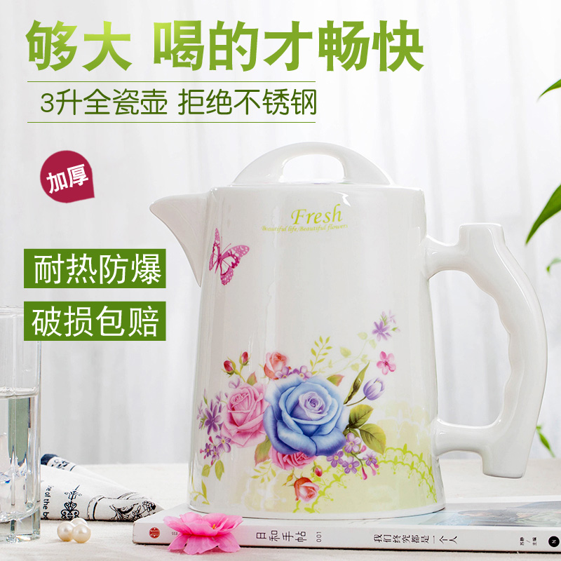 大容量景德镇陶瓷冷热大号凉水壶泡茶壶耐热高温防爆裂提梁壶复古