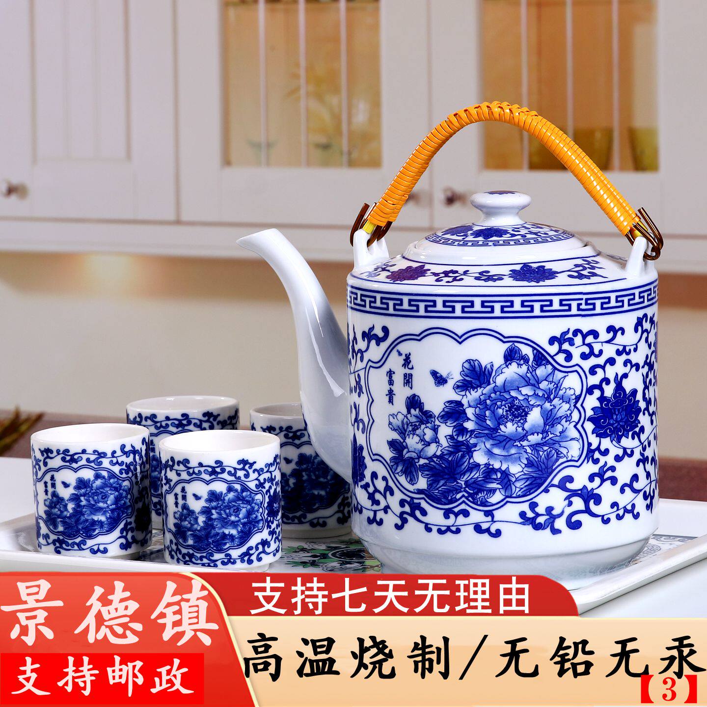 景德镇青花瓷茶壶大号家用陶瓷大容量冷水壶老式提梁壶泡茶壶茶具