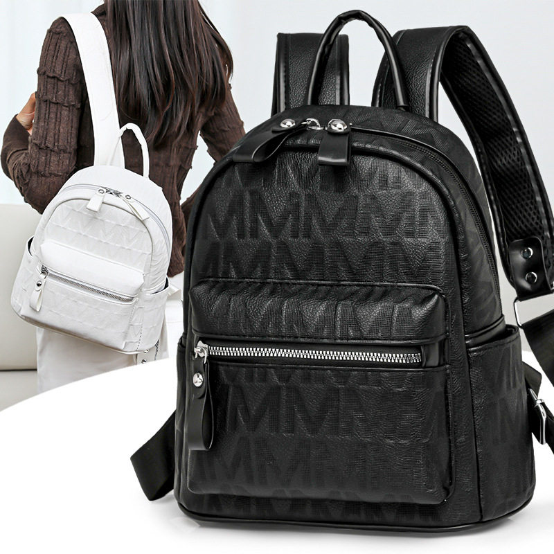 曼柔双肩包女士新款韩版百搭软皮包包简约时尚背包大容量休闲书包