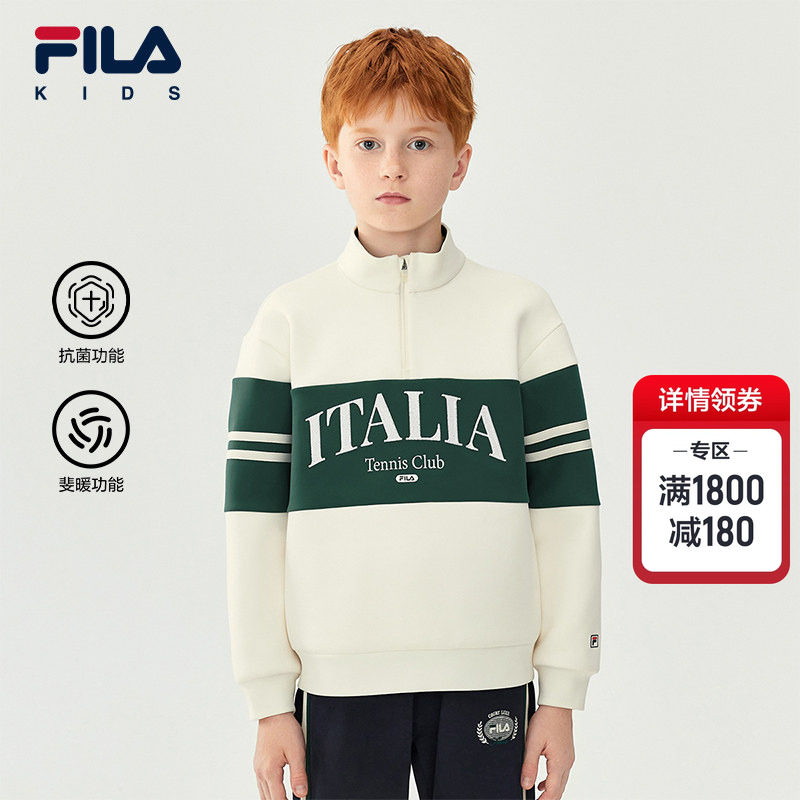 FILA KIDS斐乐童装男大童卫衣2025冬季新款儿童立领舒适套头上衣