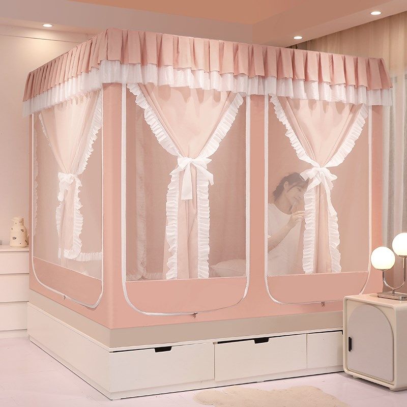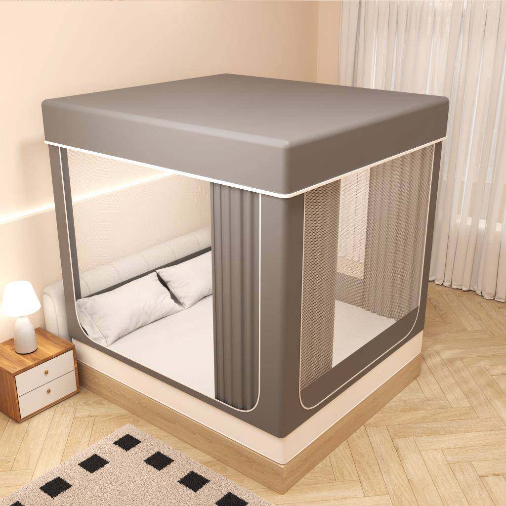物理遮光布床帘蚊帐一体式含支架全封闭床幔1.5米1.8m双人床家用