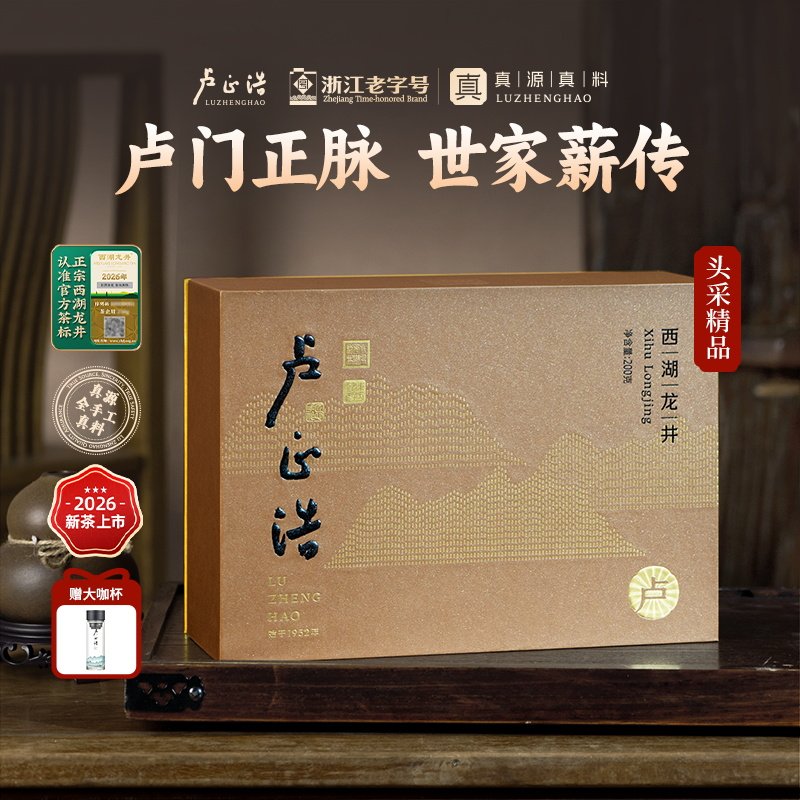 卢正浩2026新茶预售明前特级西湖龙井茶叶礼盒装节日送礼长辈200g