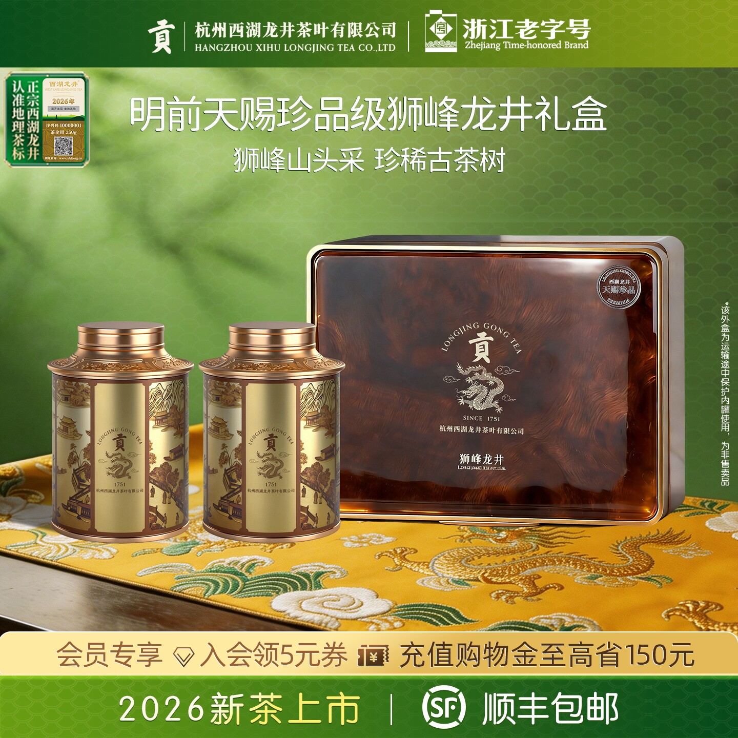 2026新茶上市贡牌明前天赐珍品级西湖头采狮峰龙井茶叶礼盒装送礼