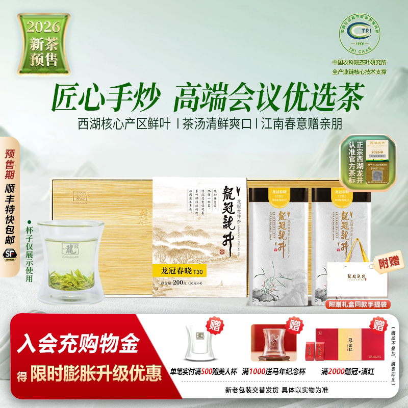 2026新茶预售 龙冠明前特级西湖产区龙井T30双罐礼盒200g绿茶茶礼