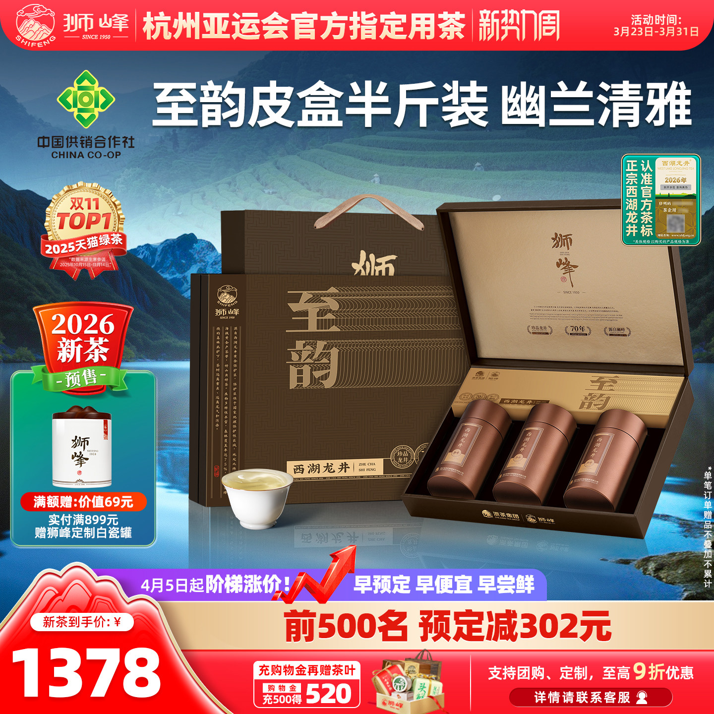 2026新茶预售狮峰牌明前精品西湖龙井茶叶礼盒装至韵春茶绿茶250g