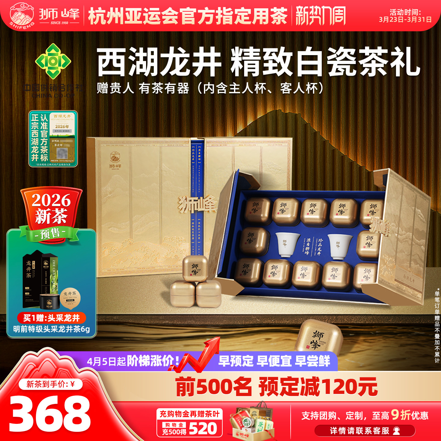 狮峰牌2026新茶上市特级明前龙井茶叶礼盒装送礼西湖藕粉春绿茶叶