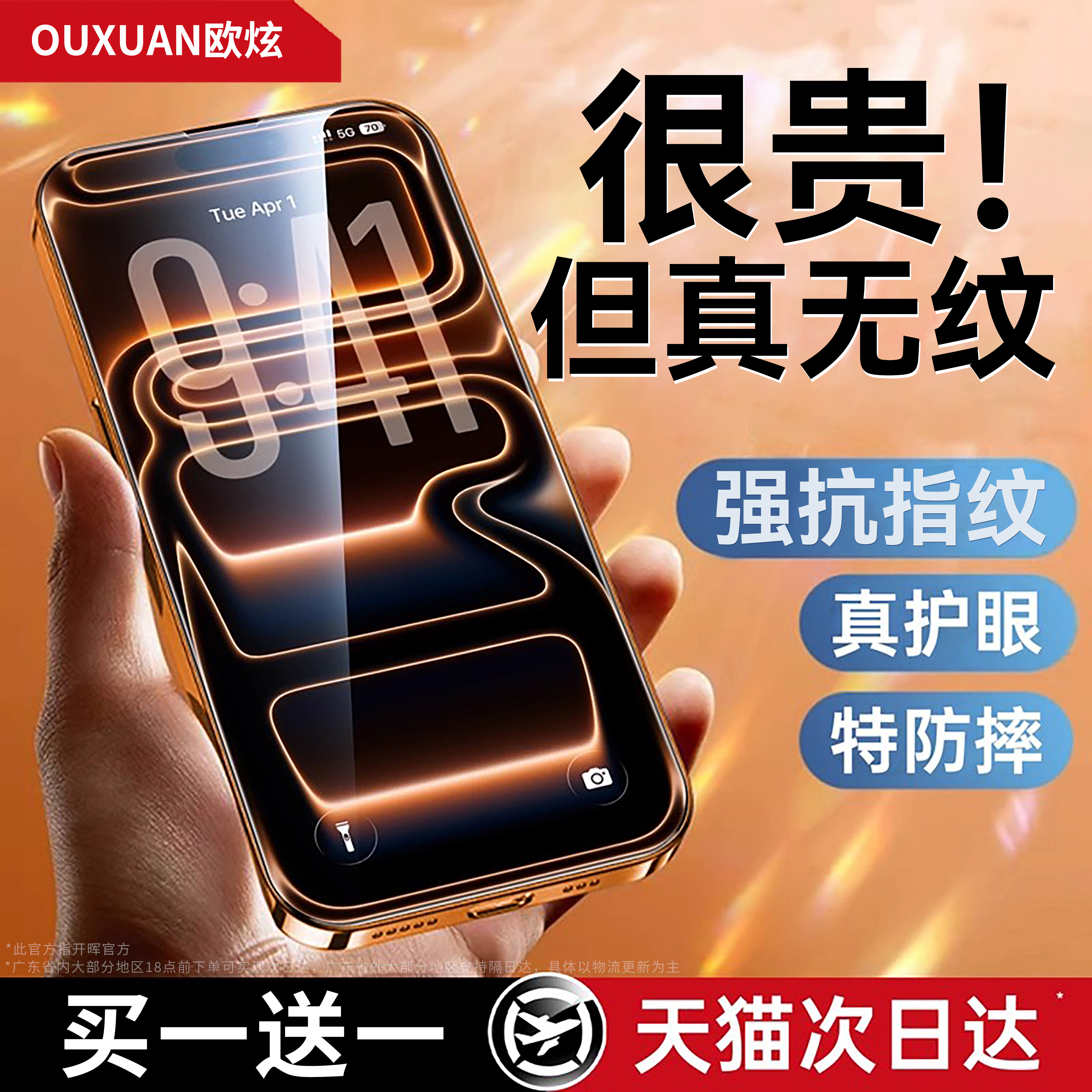 欧炫适用苹果17promax iphone钢化膜ar康宁15pro手机膜16无尘仓13贴膜14plus高清12全屏覆盖11新款air防偷窥x