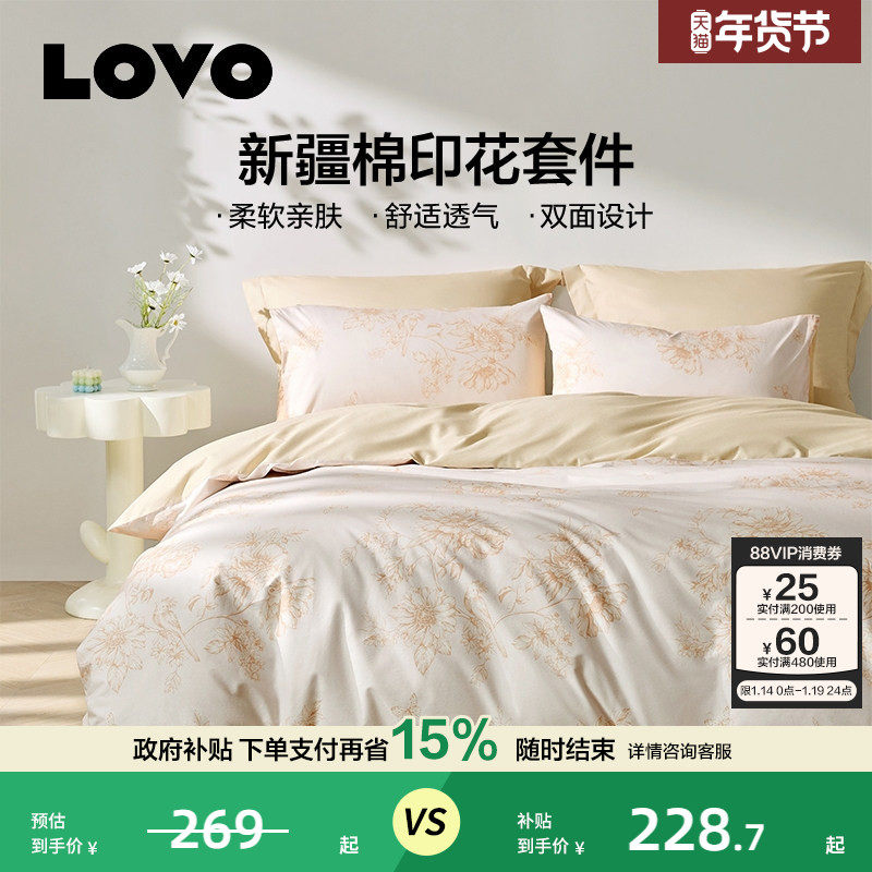 罗莱生活LOVO全棉纯棉四件套U拉链三开口轻松套被套床单1.8m双人