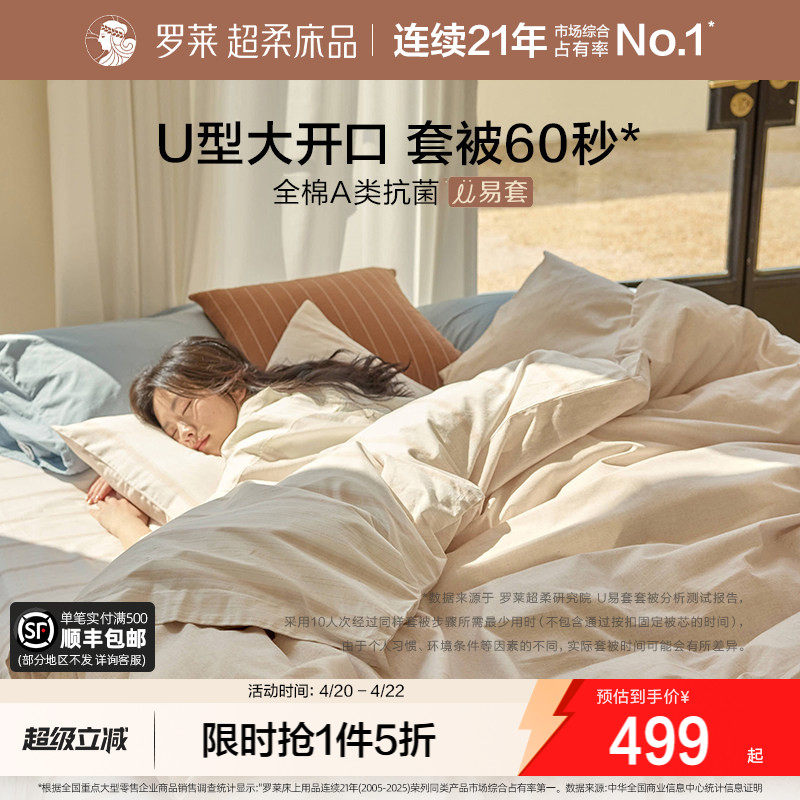 罗莱家纺U易套60支超柔全棉四件套纯棉被套床单时尚1.8m双人套件