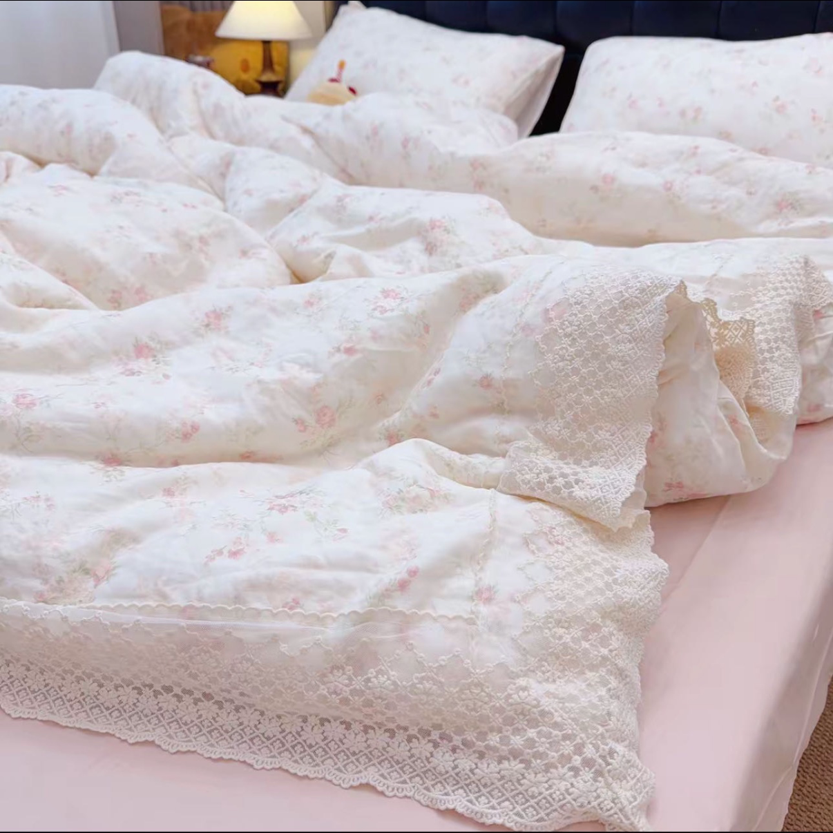 TeenieWeenie粉色花卉田园风全棉四件套纯棉被套床单床笠1.5m1.8