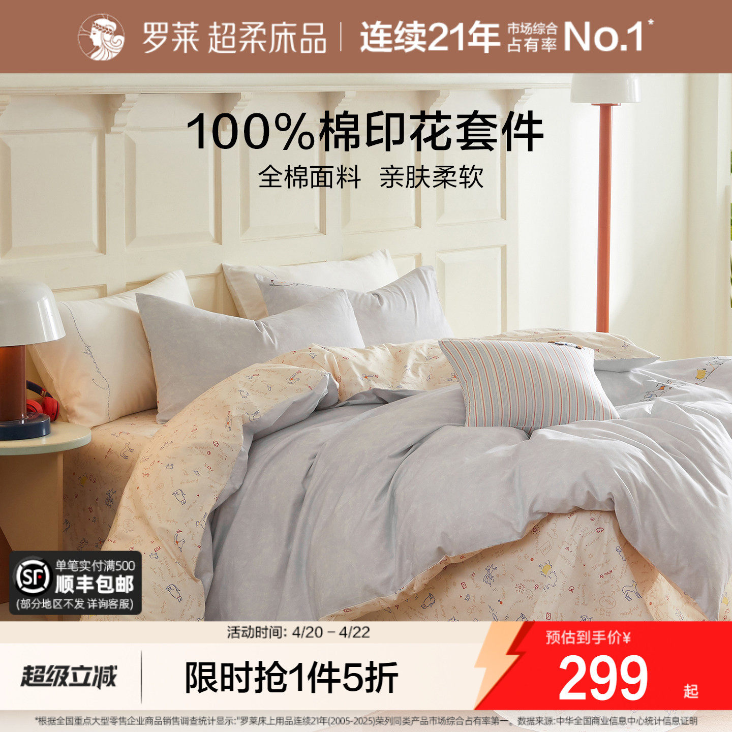罗莱家纺全棉套件宿舍三件套纯棉床单被套被罩四件套1.8m双人床
