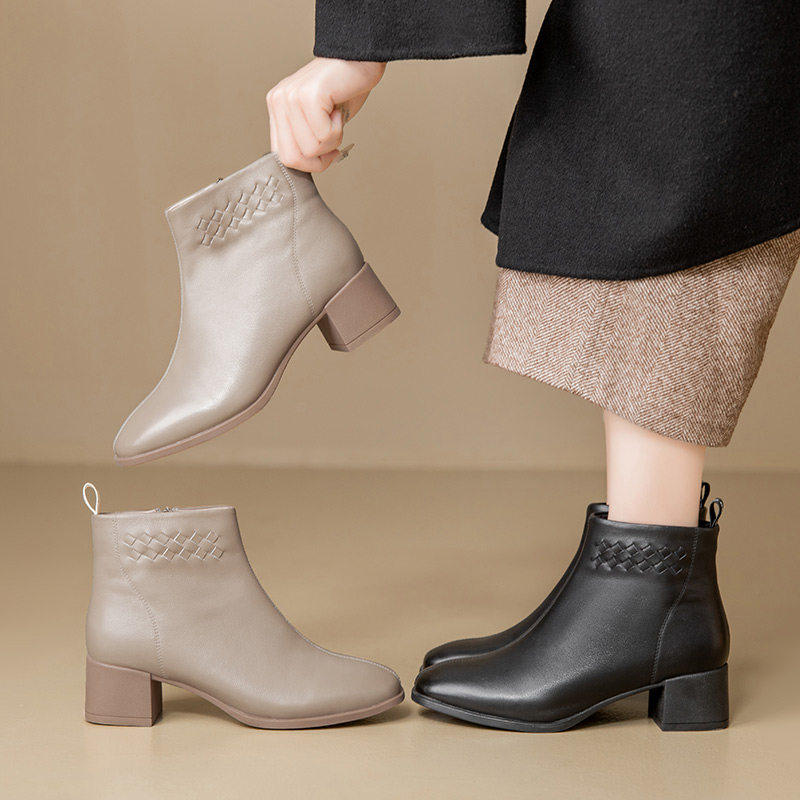 - 英伦风粗跟短靴