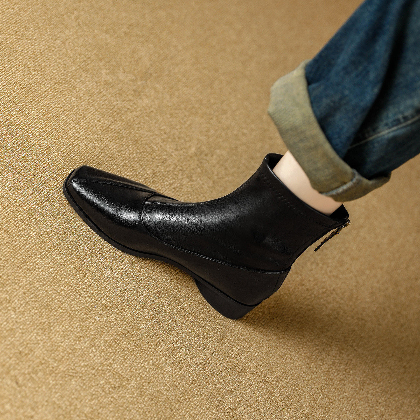 [明星同款]牛皮版~中跟短靴女2026秋冬新款方头马丁靴小个子复古