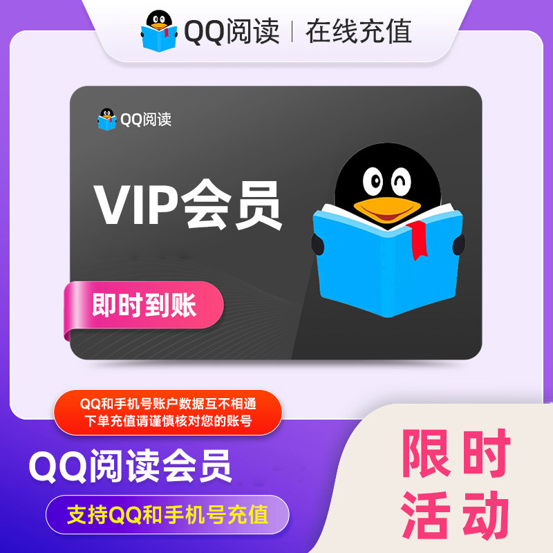 【官方直充】qq阅读会员一个月30天月卡QQ书城文学阅读vip季/年卡
