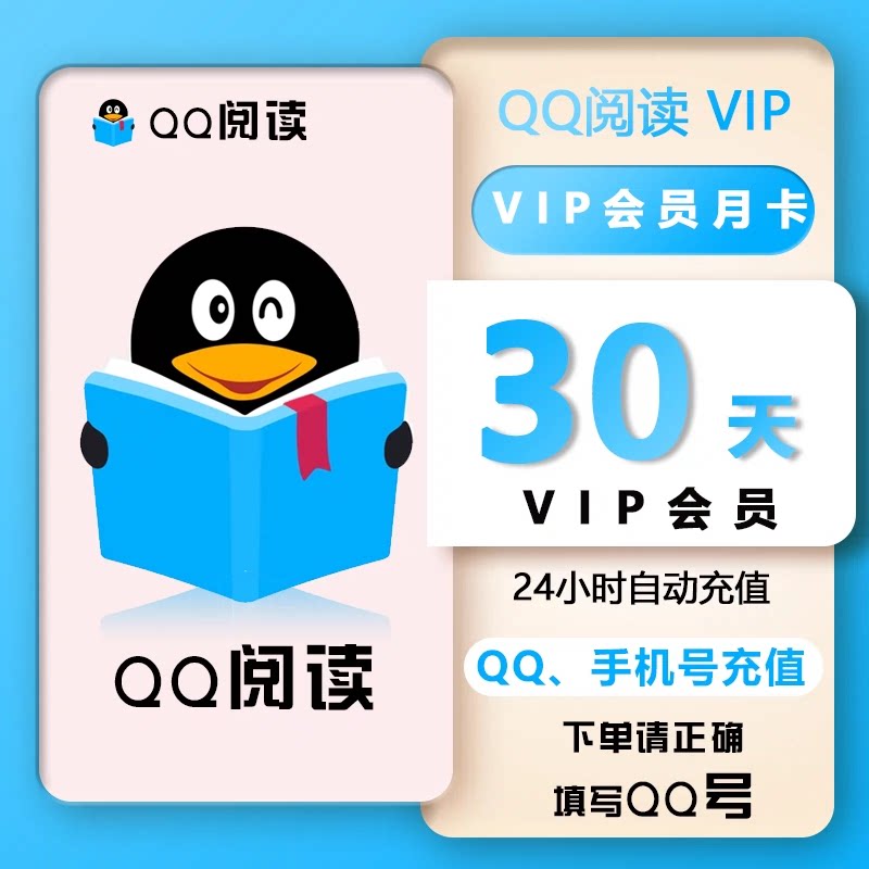 【qq阅读】QQ阅读会员包月VIP1个月 qq书币qq阅读vip填QQ直充