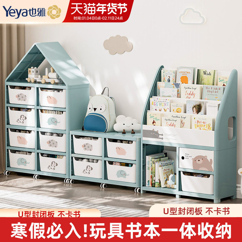 也雅儿童书架玩具收纳架置物架绘本架一体宝宝落地书柜收纳柜箱盒