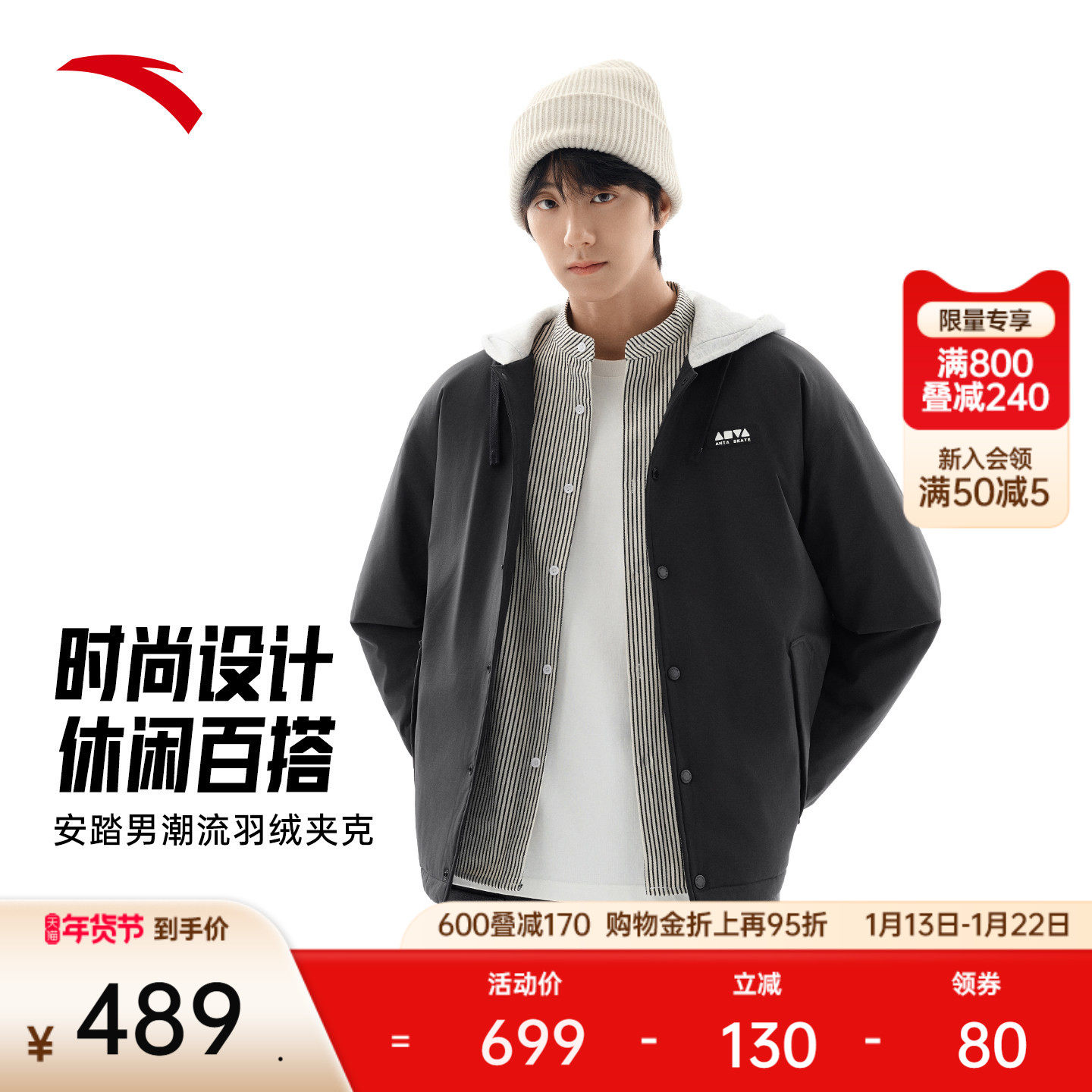 安踏短款羽绒服男女同款美式复古休闲棉服夹克外套上衣172548910