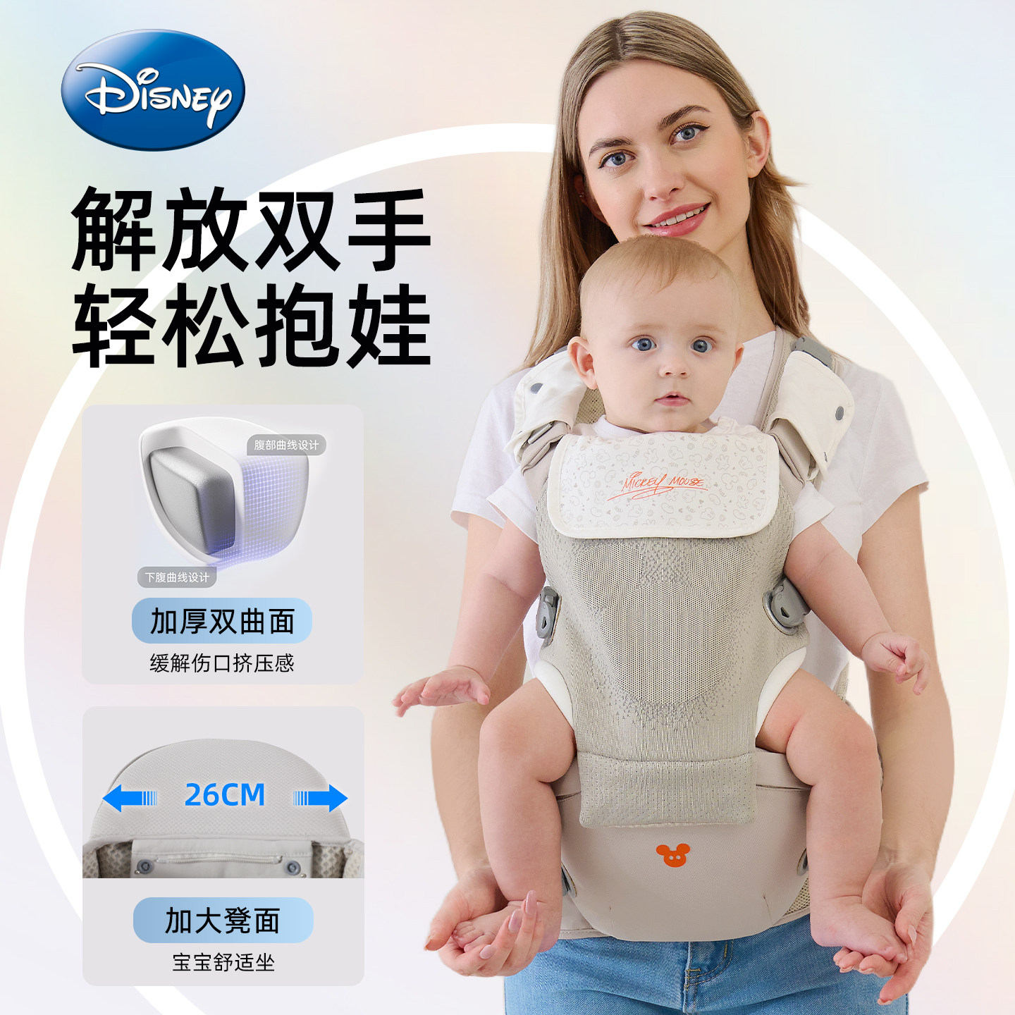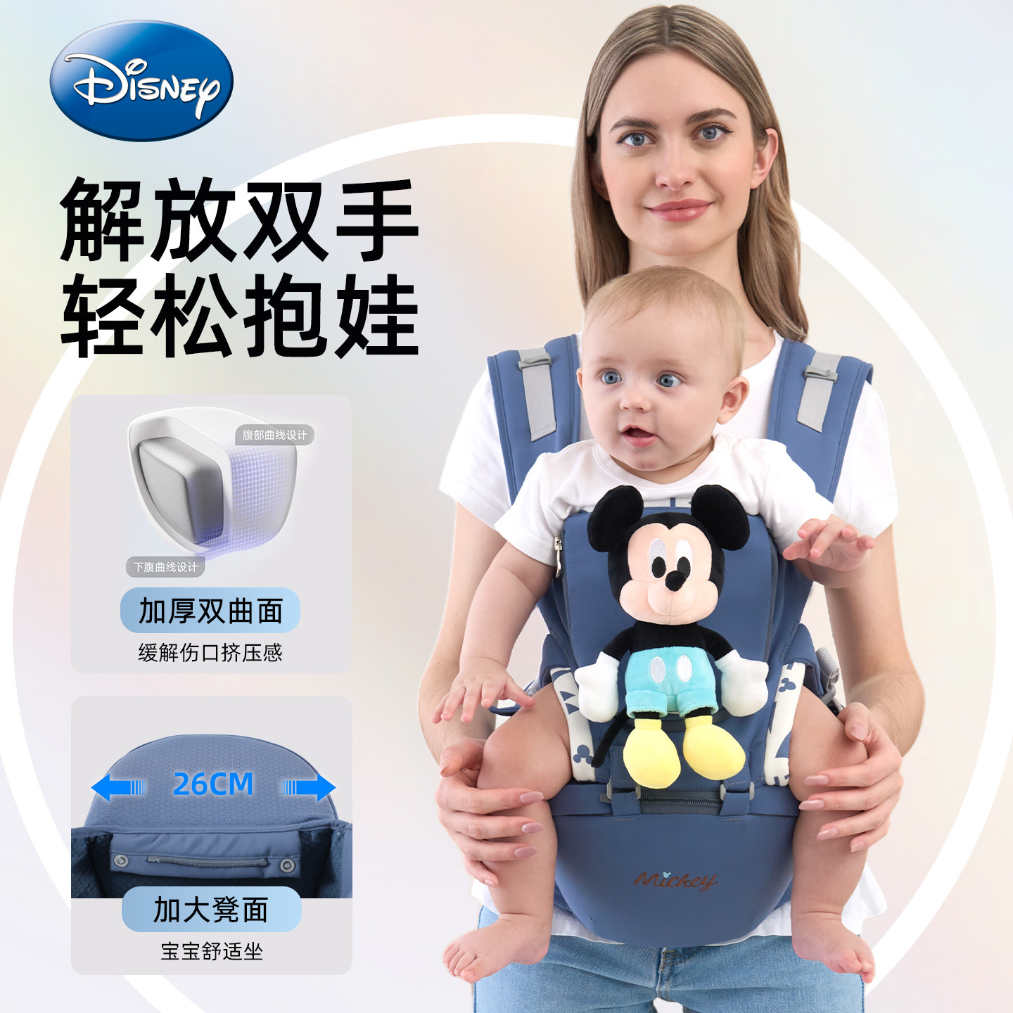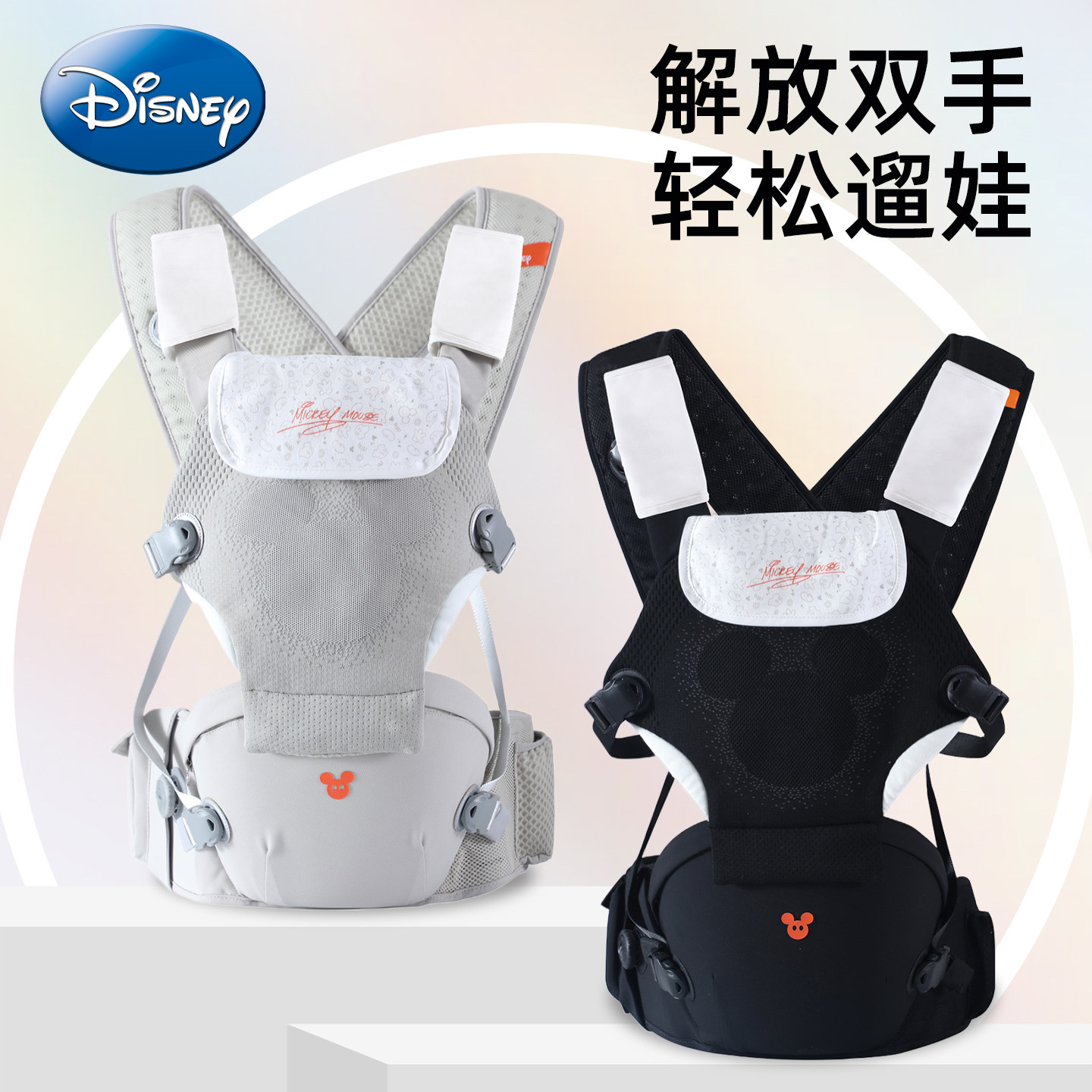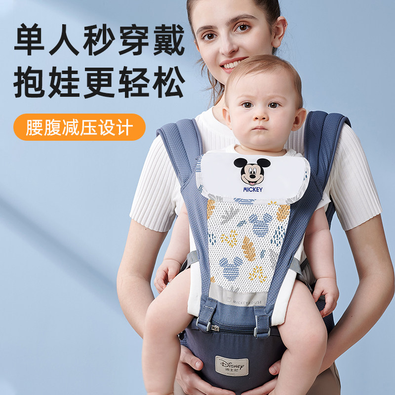 Disney迪士尼飞织婴儿腰凳轻便多功能前抱式宝宝背带四季解放双手