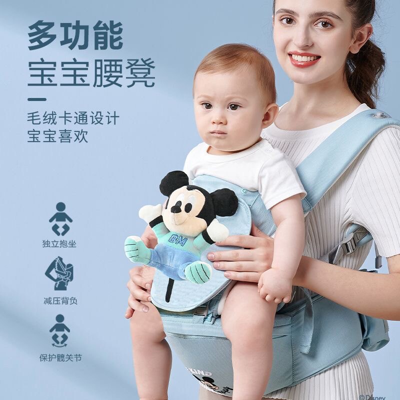 迪士尼毛绒腰凳婴儿背带轻便二合一前抱式多功能外出宝宝抱娃神器
