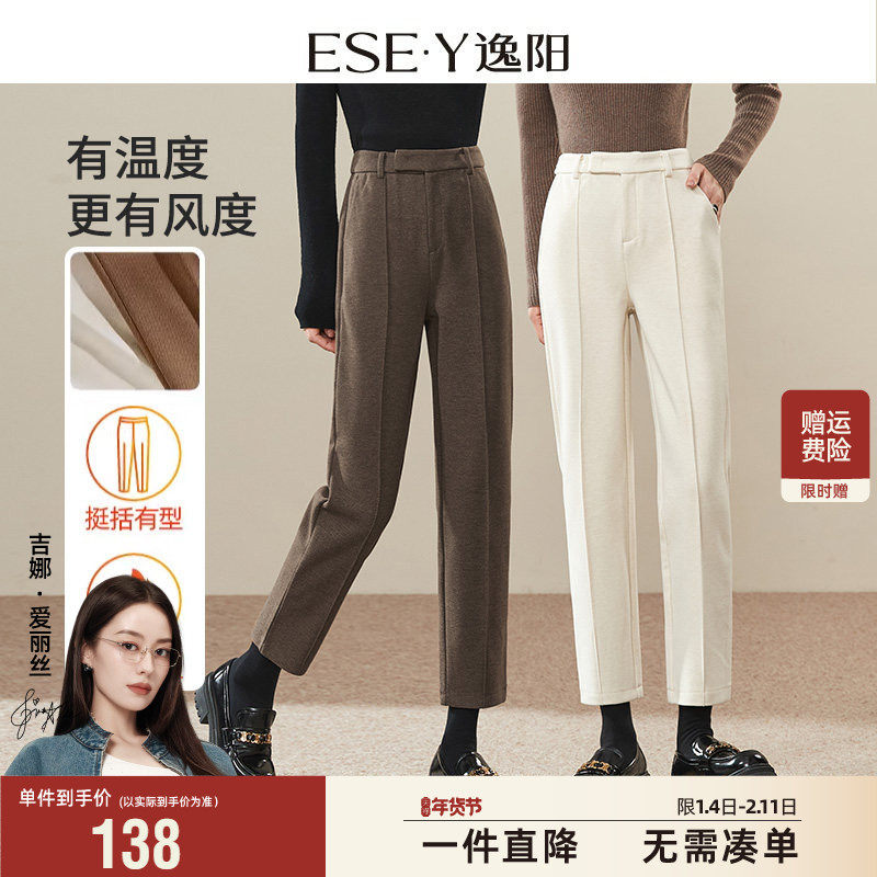 2025秋冬新款逸阳保暖毛呢西装裤女高腰显瘦哈伦裤九分烟管版西裤