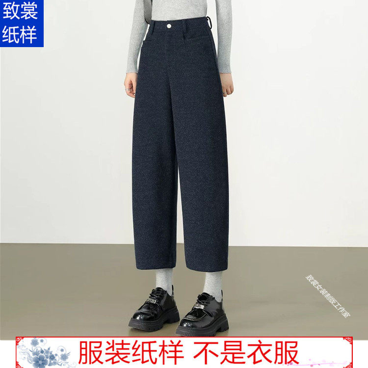 毛呢哈伦裤纸样衣服裁剪图纸1:1实物新款女装弯刀九分裤样板Z-990