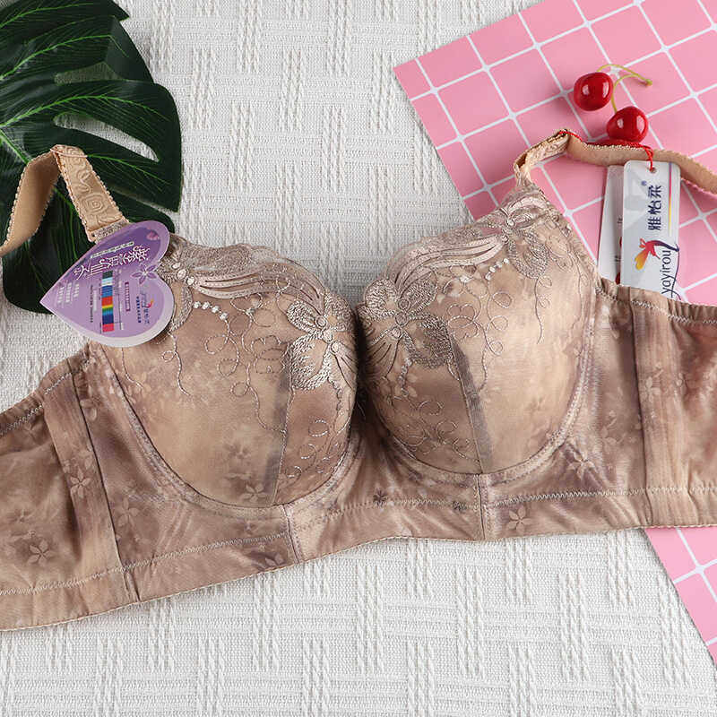 雅怡柔6385C杯有钢圈压花刺绣薄款调整型按摩聚拢侧收文胸内衣
