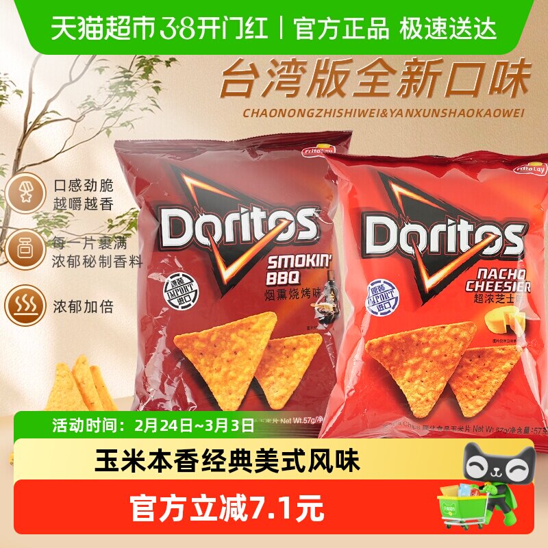多力多滋超浓芝士味+烟熏烧烤味玉米片57gx2中国台湾休闲零食膨化