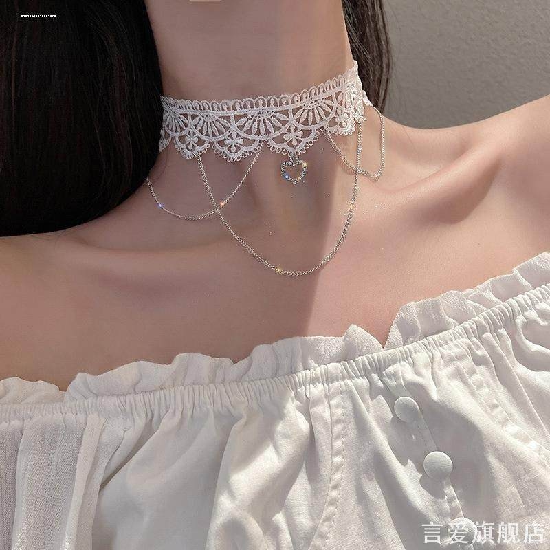 白色项圈女颈带短款气质蕾丝项链2023年新款女锁骨链脖子配饰颈链