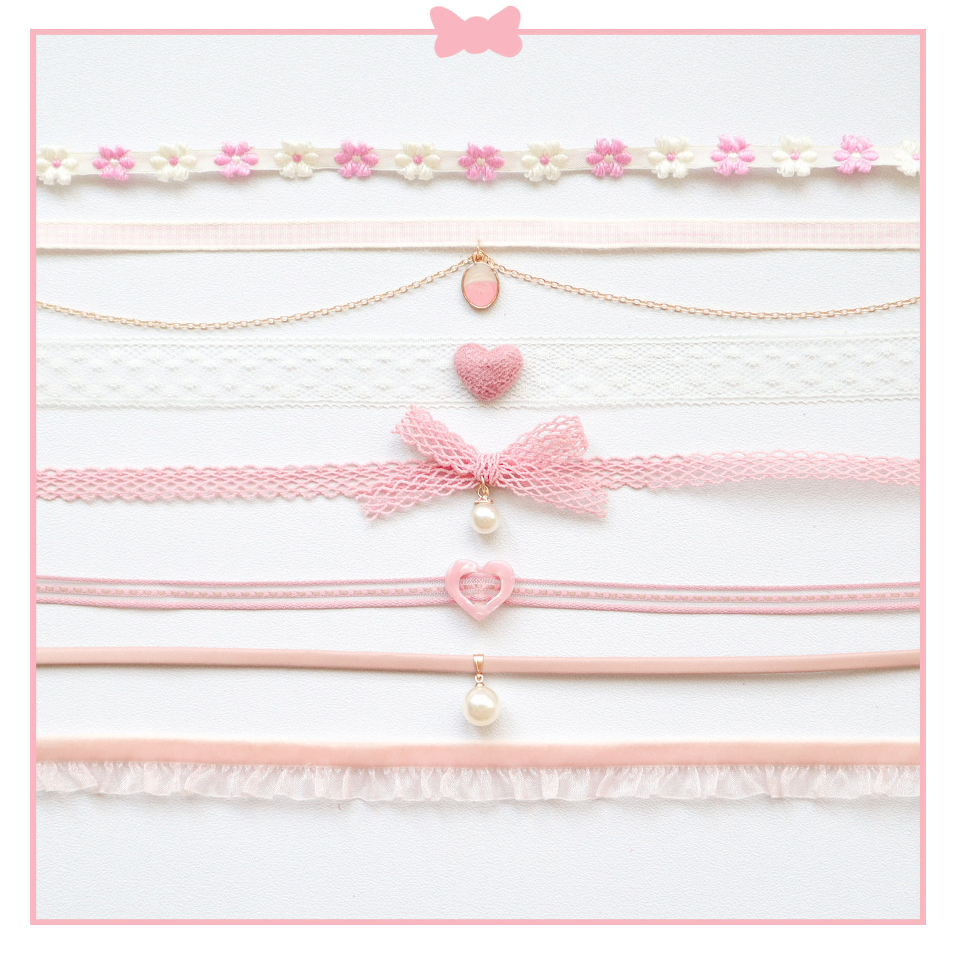 日系软妹少女颈带粉色桃心颈链choker项圈短款锁骨链项链饰品