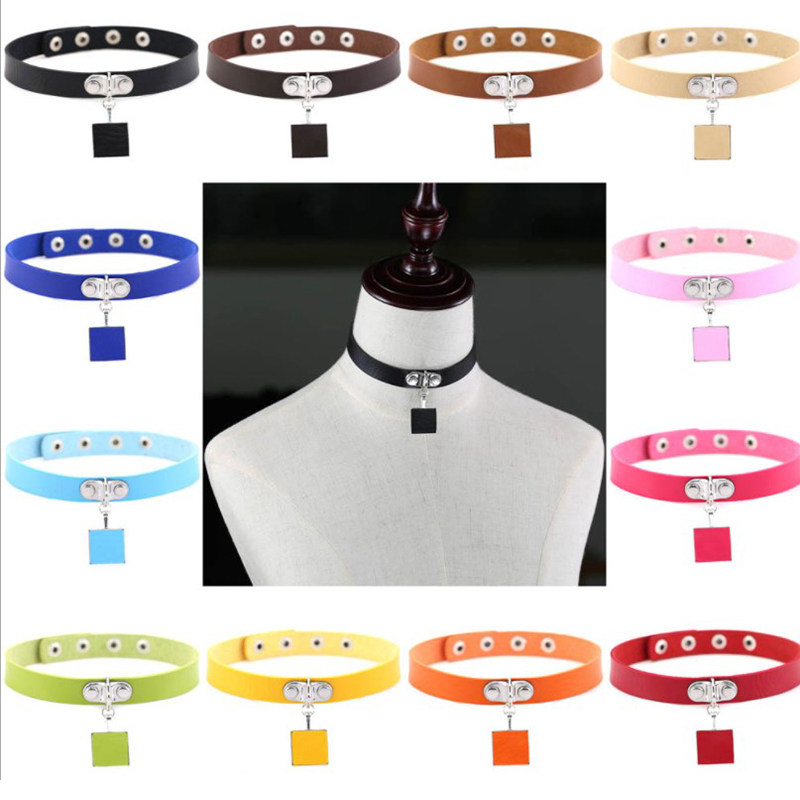 日韩原宿软妹子几何方吊坠颈带PU皮质项链短款锁骨链choker女项圈
