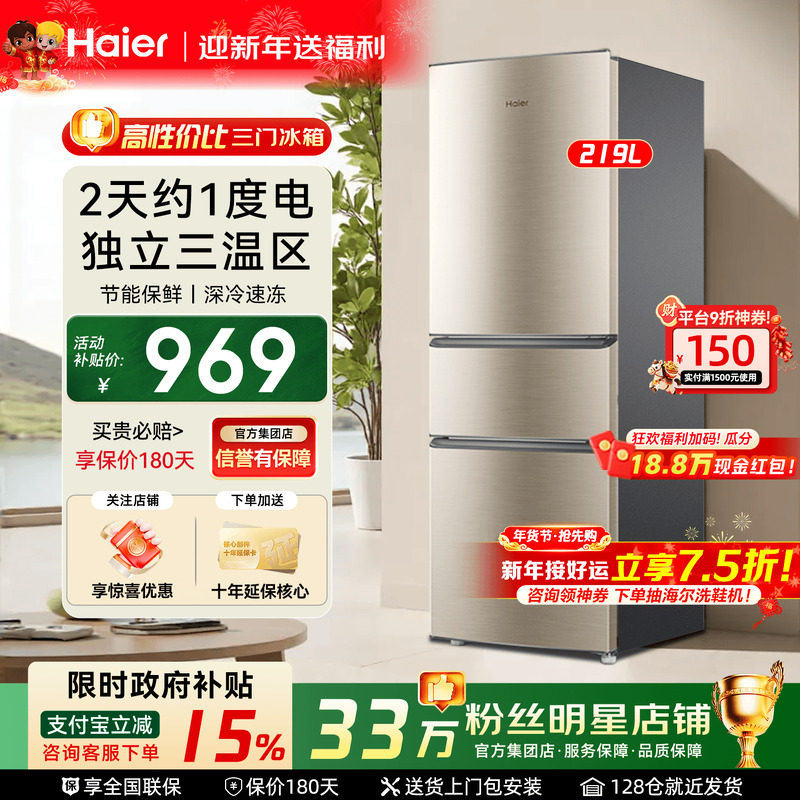 热销爆款海尔电冰箱家用219升无霜双门三门小型变频租房182旗舰店