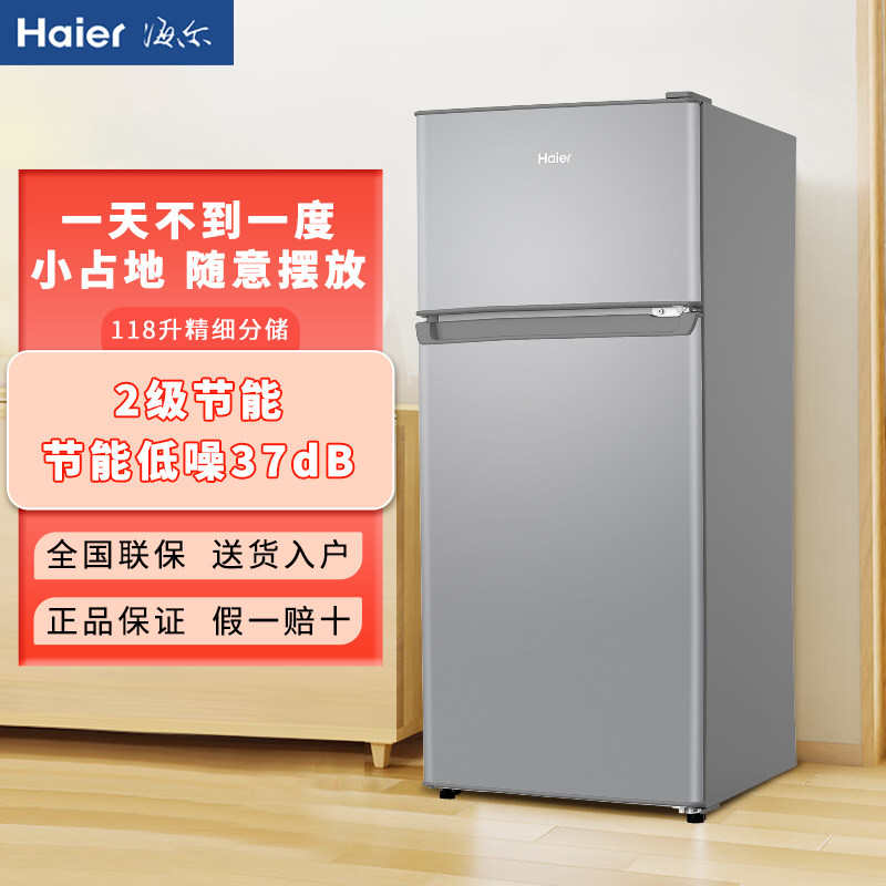 海尔小冰箱118升双门迷你冷藏冷冻家用节能小型宿舍办公电冰箱