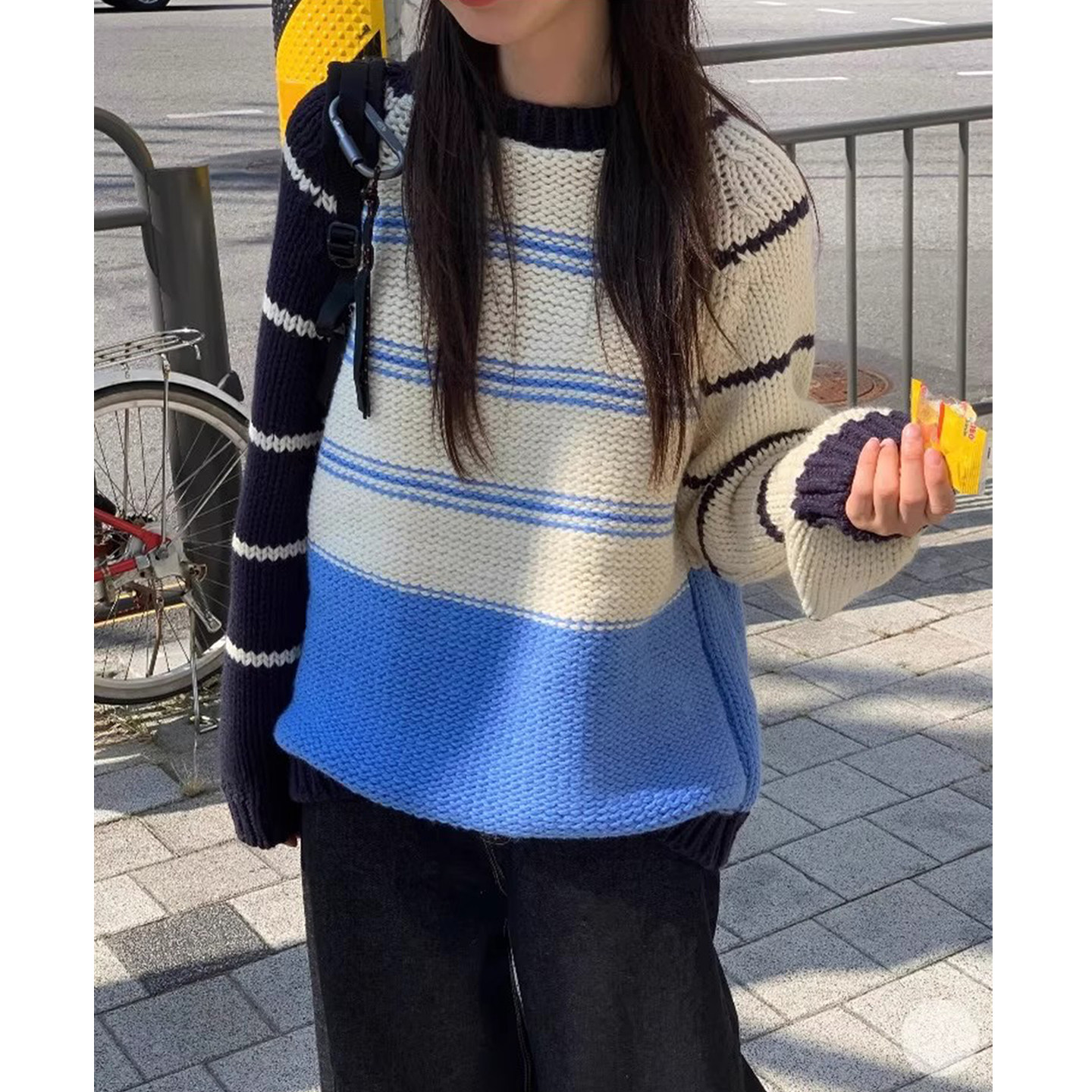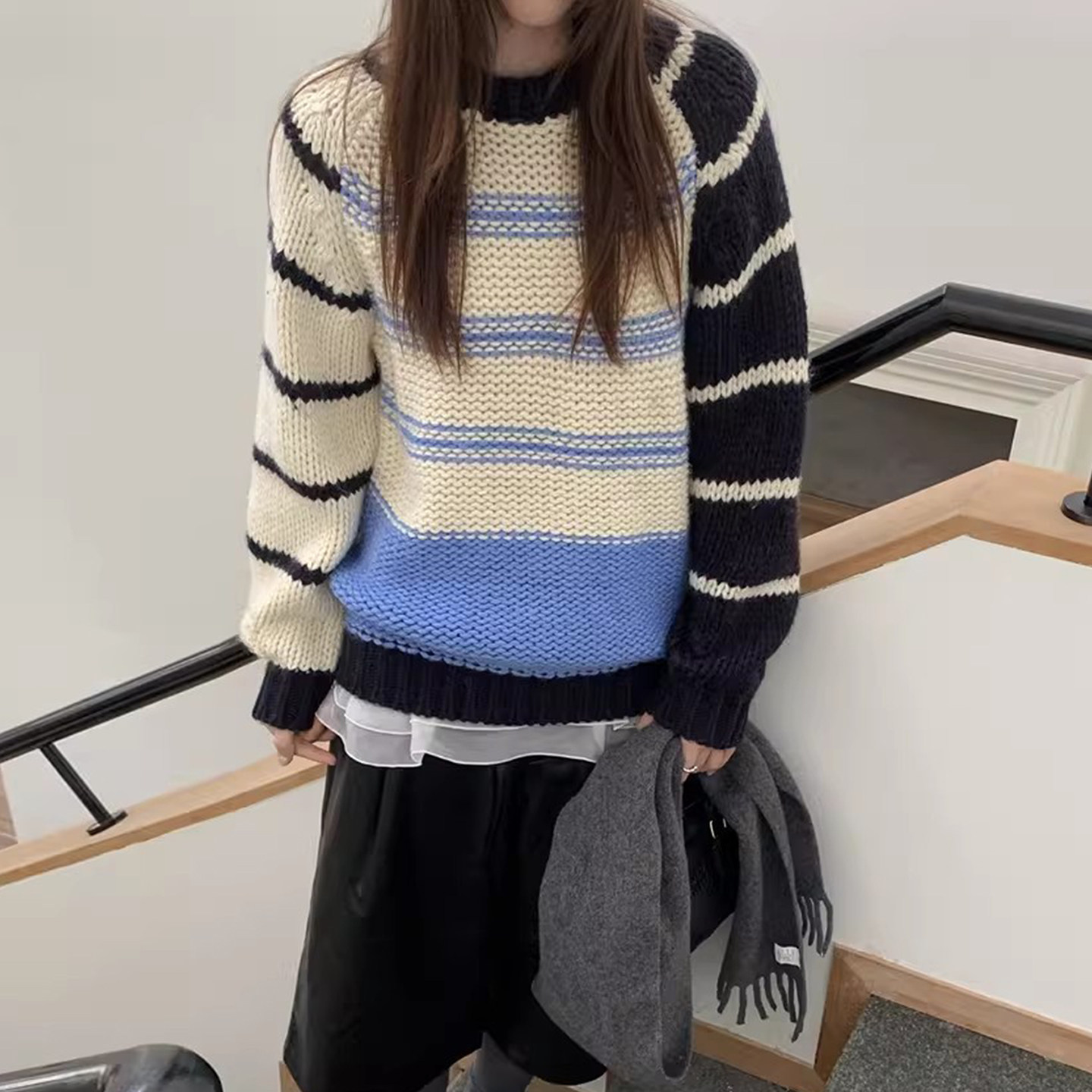 - 韩版女款宽松套头中长款毛衣