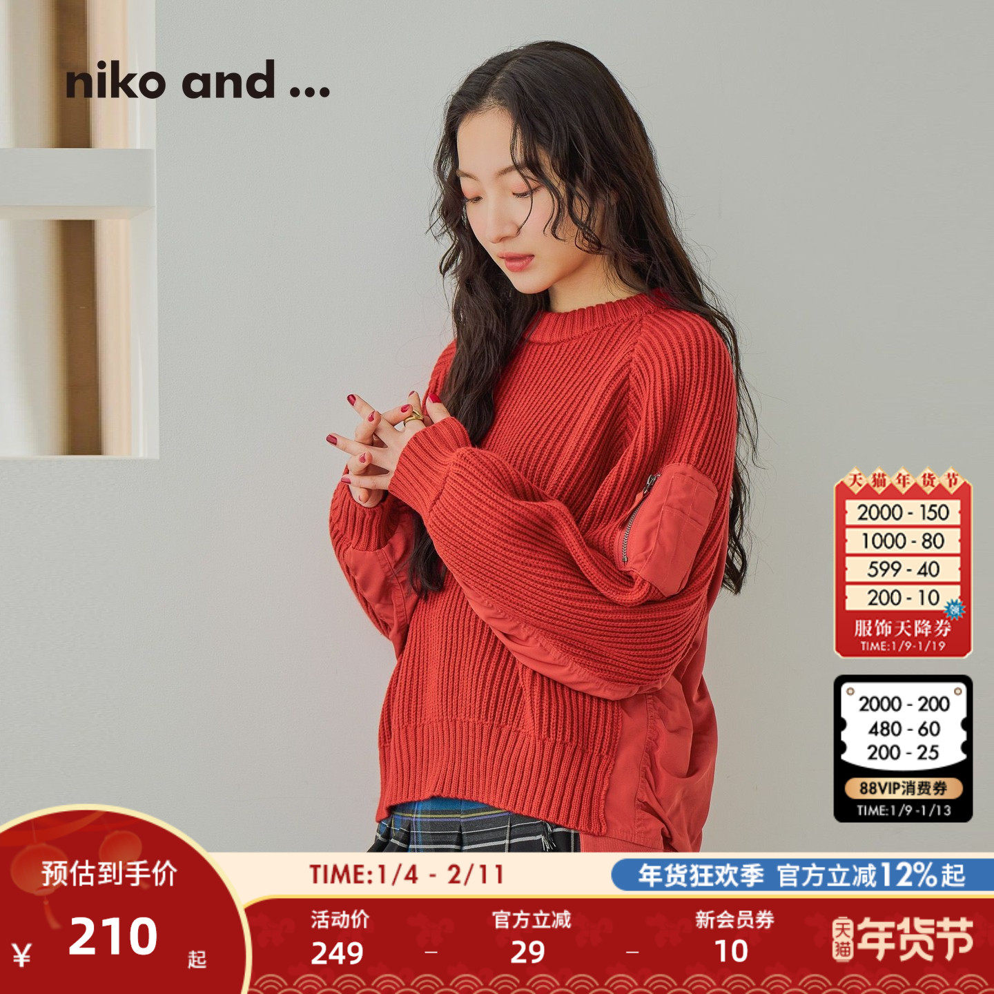 - 大红色开衫