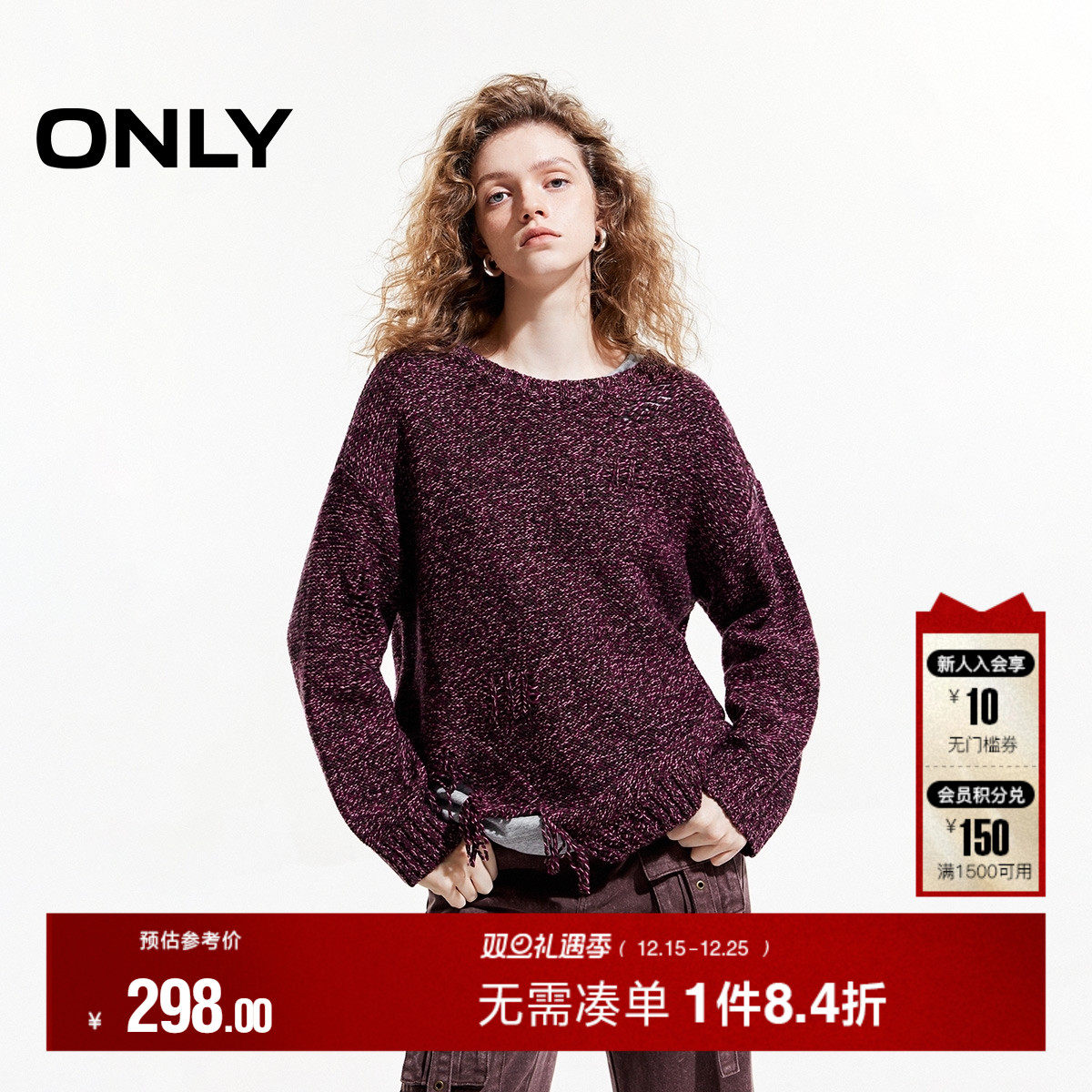 ONLY2025秋季新款时尚个性破洞慵懒宽松落肩拼接毛衣针织衫女