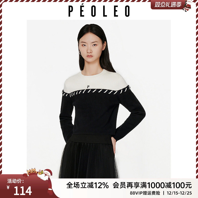2025年新款秋冬个性撞色拼接套头圆领毛衫百搭慵懒风女宽松毛衣